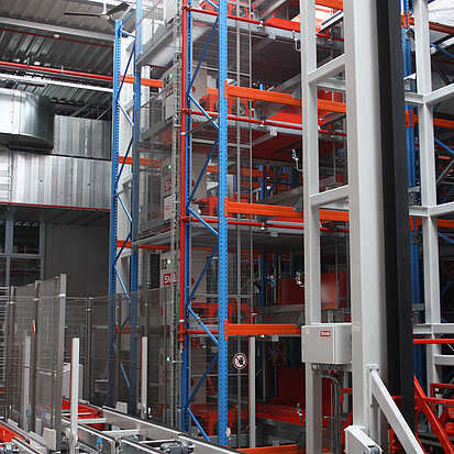 - Ein- und Auslagergeschwindigkeiten bei zu 220 Paletten pro Stunde bei zwei Liften