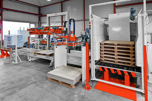 Leerpalettenmagazine, Ladungssicherung und Etikettierer für die Palettierung